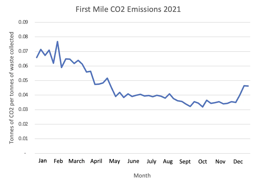 In 2021, we were delighted to see our emissions per tonne collected fall as the result of the initiatives listed below: